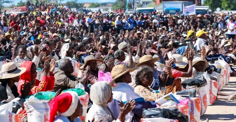 Taorian’ny filankevitry ny minisitra izay notanterahina omaly, tao amin’ny renivohitry ny Faritra Atsimo Andrefana. Tonga nigadona tao Amboasary Atsimo, Faritra Anosy ny Filoham-pirenena mivady. Marobe ireo vahoaka nanemitra ny arabe, nanomboka teo ka hatreny amin’ny Kianja filalaovam-baolina, izay toerana nofaritana fa hanaovana ny asa sosialy. Nisitraka fanampiana ara-sosialy avy amin’ny Fitondram-panjakana, araka izany,  ny tokantrano marefo ao Amboasary Atsimo, nandritra ny fitsidihan’ny Filohan’ny Repoblika, Andry Rajoelina sy Ramatoa vadiny tao an-toerana. Tokantrano miisa 4500 no nahazo ireo « Vatsy tsinjo », ary nahazo fitaovam-pianarana koa ireo ankizy hanala fanadinana CEPE. Ankoatra ireo, nanambara ny Filoha Andry Rajoelina fa hisy ny fivarotana vary mora amin’ny vidiny 500 ariary ny kapoaka, intelo isaky ny herinandro ho an’ny vahoakan’Amboasary Atsimo. Tsy nohadinoina koa ny tetikasa entina hamatsiam-bola ny fiharian’ireo fikambanam-behivavy.