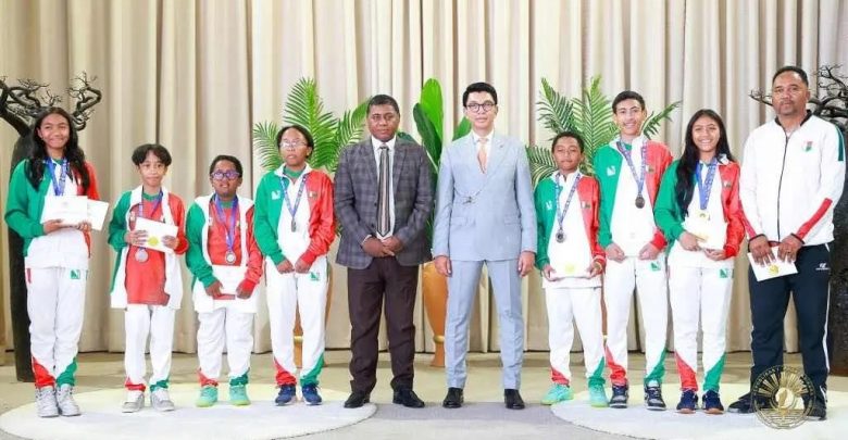 Noraisin’ny Filohan’ny Repoblika Andry Rajoelina, omaly tetsy amin’ny Lapam-panjakana Iavoloha, ireo atleta namiratra sy mendrika nitondra avo ny voninahi-pirenena, amin’ny tompondaka manerantany sy tompondakan’i Afrika azy ireo. « Miaraka mankalaza izany fandresena izay norombahinareo izany, satria nanakoako ny lazan’i Madagasikara, ka mendrika ny fankasitrahana tokoa izao fahombiazana goavana nentinareo an-tanindrazana izao. Tsy misy ny kisendrasendra, ny maha tompondaka, fa misy ezaka natao tao, izay ahafahanao mitondra sy mibata izany fandresena izay », hoy ny Filoha nandritra ny lahateniny. Rehefa hikirizana ny zavatra, dia tsy maintsy tonga amin’ny fandresena. Fantatsika fa ao anaty ady mafy tokoa mantsy no vao mainka maha sarobidy ny fandresena. Fa nohamarininareo ilay fiteny hoe : « tsy misy mafy tsy laitran’ny zoto. Ary tsy misy nofy tsy ho tanteraka izany, raha toa ka ataonao am-pitiavana sy hikirizana ny zavatra rehetra », hoy izy.