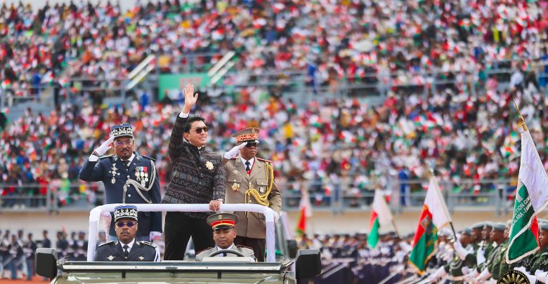 Nankalaza ny faha-65 taona niverenan’ny fahaleovantena i Madagasikara sy ny Malagasy tsy vaky volo, omaly 26 jona. Niarahaba ny Malagasy tratry ny Asaramanitra, avy amin’ny lafivalon’ny Nosy sy ireo tonga nanoina ny antso tao amin’ny kianjan’ny Barea Mahamasina, ny Filoha Andry Rajoelina. “Miredareda ao am-pontsika ny afon’ny fitiavan-tanindrazana amin’izao andro manan-tantara izao. Tsy azo hadinoina fa ankasitrahana koa anefa ny ezaka nataon’ireo Razambentsika nitaky, nilofo mba hiverenan’izany fahaleovantena izany. Ary izany indrindra no mahasaropiaro antsika amin’ny tantaran’ny firenena, amin’ny tantaran’i Madagasikara”, hoy izy. Raha mibanjina ery ambony ery isika, dia mahita ny Rovan’i Madagasikara, izay levon’ny afo, dia ny afon’ny sompatra sy ny afon’ny gafy. Ary izay indrindra no nanaovantsika vaindohan-draharaha, satria ankehitriny ny lavenona dia nataontsika nijoro, satria dia vita daholo ny Lapa rehetra ao anatin’izany Rovan’i Manjakamiadana izany, mba ho lova ho an’ny taranaka fara mandimby sy ny tantaran’i Madagasikara, raha ny fanampim-panazavany.