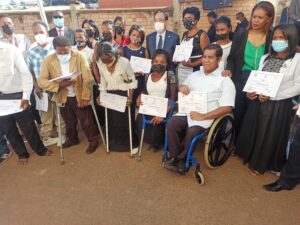 Notokanana omaly tamin’ny fomba ofisialy tetsy Ampandrianomby, ny Ivon-toerana fandraisana an-tanana ireo iharan’ny herisetra, niaraka tamin’ny fanolorana kojakoja ho an’ireo olona manana fahasembanana. Isan’ireo tetikasa novatsian’ny governemanta japoney vola, izay tafiditra tao anatin’ny ilay tetibola 591,754 USD. Isan’ny nisitraka izany ny tao Toamasina, Mahajanga ary ny eto Antananarivo. Tetikasa niainga ny 2021, niaraha-niasa tamin’ny governemanta malagasy, amin’ny alalan’ny minisiteran’ny Fampianarana teknika sy ny fanofanana arakasa sy ny UNFPA ary ny Firenena japoney. Nasongadin’ny minisitry ny Fampianarana teknika sy ny fanofanana arakasa, Rahantanirina Vavitsara Gabriella, « fa tafiditra tanteraka ao anatin’ny velirano fahefatra sy fahenina ny fampianarana ho an’ny rehetra. Isan’izany ireo olona manana fahasembanana, dia manana zo hiofana arakasa ». Tsapa fa manana fijaliana ireo olona manana fahasembanana ireo.