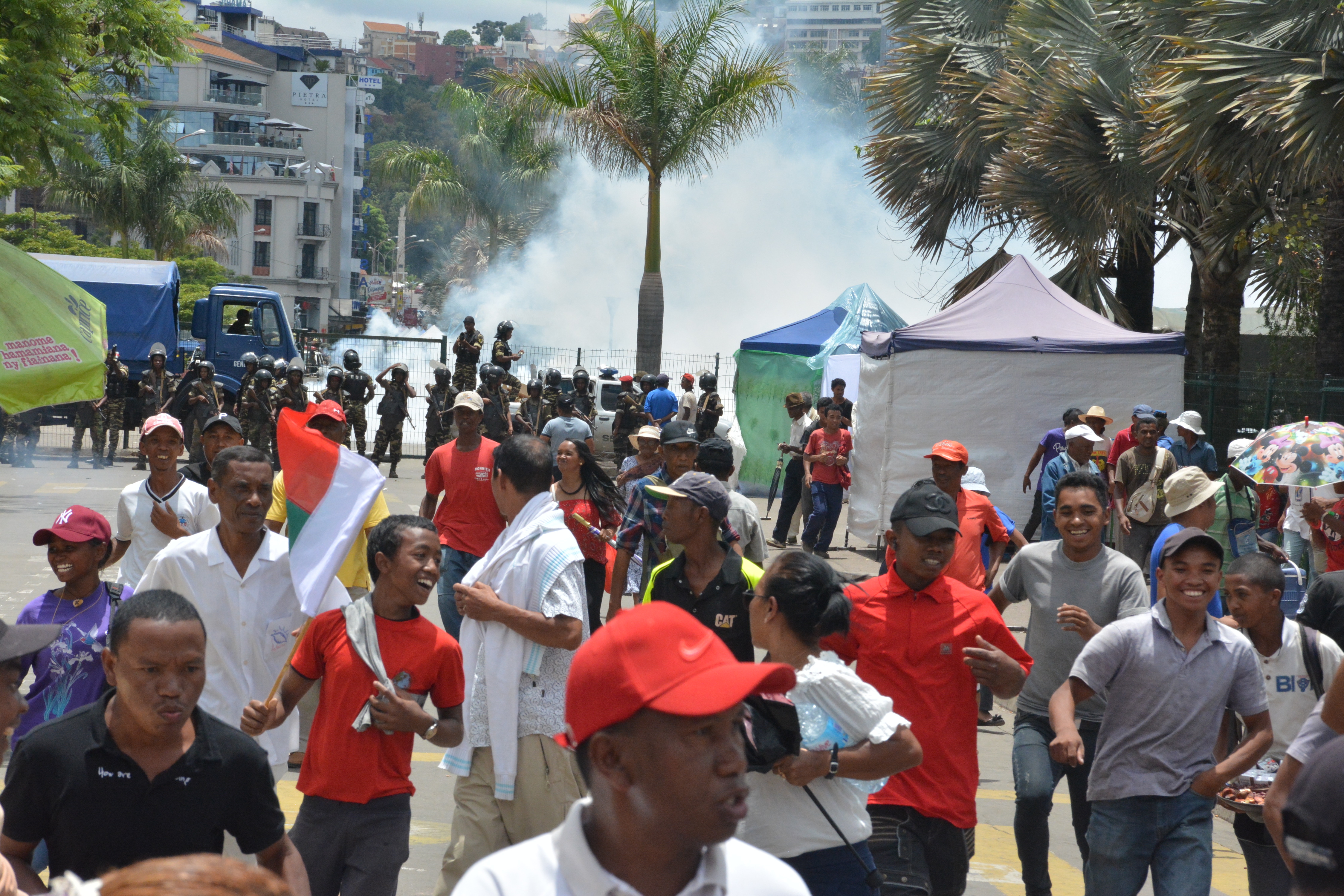 Ny Filoha frantsay, Emmanuel Macron no nikabary voalohany nandritra ny lanonana fanofakana ny fihaonana an-tampony Frankofonia, andiany faha-19 ity. Nandimby azy avy eo ny Sekretera Jeneralin’ny OIF, Louise Mushikiwabo ary namarana ny Praiminisitra Toniziana. Nisongadina tamin’ny kabarin’ny filoha frantsay ny filazany hoe : « mampiray Firenena na vondrona Firenena maro ny teny frantsay ». Nomarihany sy nalainy ohatra tamin’izany fa : « mampiray an’ireo Firenena aty amin’ny Ranomasimbe Indiana ahitana an’i Madagasikara, Maorisy, La Réunion ary Kaomoro ny teny frantsay ». Ankoatra izay, ny teny frantsay, araka ny kabariny, dia : « sehatra ifanakalozana sy hifanomezam-baovao, ampiasaina amin’ny famoronana, ifandraharaha ara-toekarena, entina ary entina mampianatra ». Araka ny kabary ihany : » ny teny frantsay dia manan-danja amin’ny fandresen-dahatra ara-diplaomasia manerana an’izao Tontolo izao » satria ireo kaontinanta miisa 5 ao anton’izao tontolo izao dia ahitana Firenena mivondrona ao amin’ny OIF avokoa ».