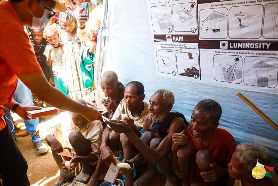 Tsy nitsidika fotsiny ihany ny Filoha, raha nandalo tany amin’ny tapany Atsimon’ny Nosy iny, fa nitondra vahaolana avy hatrany. Noho izany, ho famonjena haingana ny mponina dia efa tonga any an-toerana ny kamiao lehibe mitatitra rano. Tetikasa maharitry ny Filoha kosa ny hisintonana rano ao amin’ny reniranon’i Mandrare sy Efao, ary ny fitaritana izany ao amin’ny Fokontany mba hahazoan’ny mponina rano fisotro madio. Etsy ankilany, paikady hanavotana ireo mponina tratry ny tsy fanjariantsakafo kosa ny fametrahana ny toby fanarenana ara-tsakafo sy fitsaboana maimaimpoana. Hapetraka ao amin’ny Fokontany ny toby ary hatsangana amin’ny distrika hafa mila izany koa. Ity toby ity izay natao handray an-tanana ireo olona osa sy tsy afa-mitsangana noho ny hanoanana. Hisitraka sakafo masaka isanandro ihany koa manomboka izao ireo zaza. Sakafo be otrikaina no homena azy ireo ahitana koba aina, moringa sy Spiruline. Haharitra volana maromaro ny fizarana maimaimpoana.