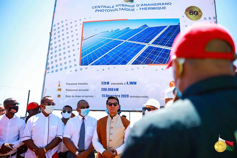 Nandray anjara feno tamin’ny fanamarihana ny faha-62 taona nijoroan’ny Repoblikan’I Madagasikara ny Filoha Andry Rajoelina. Tao Anahidrano, toerana nahaterahan’ny Filoha Philibert Tsiranana, sy nilevenany ihany koa, no nanamarihana izany. Isany nanamarika ny Fitondran’ity Filoha teo aloha ity ny fananganana fotodrafitrasa, izay saika efa simba sy rava ny ankamaroan’izy ireny noho ny tsy fisian’ny fikarakaran’ireo mpitondra nifandimby taty aoriana. Vonona hanangana indray anefa ny Filoha Rajoelina, amin’ny alalan’ireo Velirano 13 efa napetrany ho an’ny firenena. Tafiditra ao anatin’izany ny fametrahana ny angovo azo havaozina amin’ny alalan’ny herin’ny masoandro, rivotra sy ny rano. Hampihena ny vola sy ny fandaniana toy ny solika ilaina amin’ny Jirama, ny fametrahana ny toby famokarana herinaratra mandeha amin’ny angovo azo avaozina. Ho an’Antsohihy manokana, efa miasa ankehitriny ny « centrale hybride photovoltaïque – Thermique », napetraka ao amin’ny Fokontany Bekotrobaka Ambalabe Andrefana Antsohihy. Manana tanjaka 19. 680.000 KwH ity ivontoerana mpamokatra herinaratra azo amin’ny masoandro ity. Omaly no notokanan’ny Filoha ity fotodrafitrasa hamatsy herinaratra ho an’ny tanan’Antsohihy ity. Tetsy ankilany, nentin’ny Filoha nanamarihana ny andron’ny 14 oktobra ny fametrahana ny vato fototra ho fametrahana ny ivontoerana mpamokatra herinaratra : « centrale hybride photovoltaïque – Thermique » ao Anahidrano. “Mizotra mankany amin’ny fanatanterahana ny velirano ny fametrahana ny fotodrafitrasa momba ny herinaratra”, hoy ny Filoha. Ho vita mialoha ny farany taona 2020 ny asa fanamboarana izay hanome herinaratra manana tanjaka 200.000kw isan-taona, araka ny fanazavana hatrany.