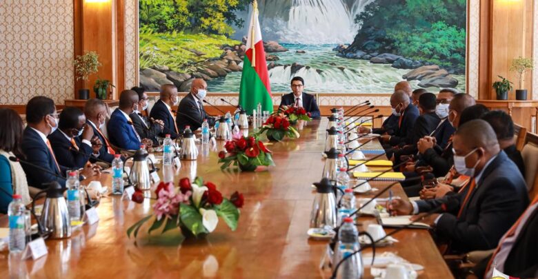 « Ny tena anton’izao fihaonana izao dia ny hiarahana mijery ny fomba hanafainganana ny fanatanterahana ireo asa rehetra manerana ireo Faritra izay hiarahan’ireo Governora manatanteraka miaraka amin’ireo vondrom-bahoaka eny ifotony » hoy ny Filoha Andry Rajoelina nandritra ny fihaonana tamin’ireo Governora avy amin’ny Faritra 21 omaly teny amin’ny Lapam-panjakana Iavoloha. Ho fampiharana ny politikan’ny fitsinjaram-pahefana apetraky ny Fitondram-panjakana dia noresahana nandritra ity fihaonana ity ihany koa ny fomba hanatsarana ny fiaraha-miasa amin’ireo mpisehatra rehetra any ifotony, na olom-boatendry na olom-boafidy, mba hampahomby ny fanatanterahana ireo tetikasam-pampandrosoana. Ny fampandrosoana an’i Madagasikara dia miainga avy amin’ny fampandrosoana ny Faritra tsirairay avy, ary tsy hisy intsony ny distrika ho adino.
