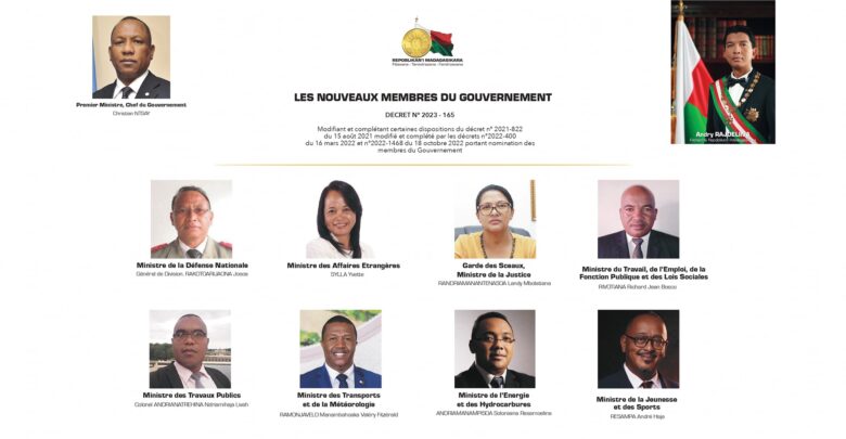 Araka ny Didim-panjakana laharana faha-2023-165 dia Minisitra vaovao miisa valo indray no tafiditra ao anatin’ny Governemanta tarihin’ny Praiminisitra Ntsay Christian. Ity Governemanta amin’ny endriny ankehitriny ity, noho izany, no heverin’ny mpanara-baovao fa hiara-dalana amin’ny Filoha Andry Rajoelina hatrany amin’ny fiafaran’ny fepotoam-piasany…
