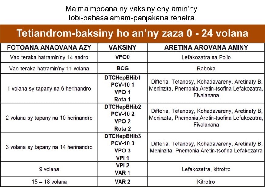 Fanefitra amin’ny karazana aretina maro, fomba iray hahafahana mampitombo ny hery fiarovana amin’ny olona iray ny vaksiny. Ho antsika eto Madagasikara manokana, manana karazam-baksiny maro isika izay natokana ho an’ny zaza, ny vehivavy mitondra vohoka, ary ireo karazany hafa fanefitra amin’ny aretina samihafa. Anisany paikady apetraky ny eo anivon’ny Minisiteran’ny Fahasalamam-bahoaka, miaraka amin’ireo mpiara-miombona antoka aminy hampiroboroboana ny fanaovam-baksiny ny “Approche Atteindre chaque Cible – ACC”. Amin’ny tanàn-dehibe no nampiharana io paikady io ary voakasika manokana tao anatin’izany ny tao amin’ny Distrikan’i Mahajanga I, Faritra Boeny. Araka ny fanazavan’ny Mpandrindra ny fanaovam-baksiny eo anivon’ny Distrikan’i Mahajanga I, dia nihatsara ny fitantanana sy ny famatsiana vaksiny hatramin’ny nampiharana io paikady io, izay tohanan’ny UNICEF. Ity farany izay nanome “Tuc tuc” nanampy amin’ny fitaterana ireo vaksiny any amin’ireo CSB manatanteraka izany. Mbola ny UNICEF koa no nanome fampitaovana toy ny Solosaina sy ny fanamafisam-peo ary fitaovana hafa, nentina nampiasaina ao anatin’ny fampiroboroboana ny fanaovam-baksiny.