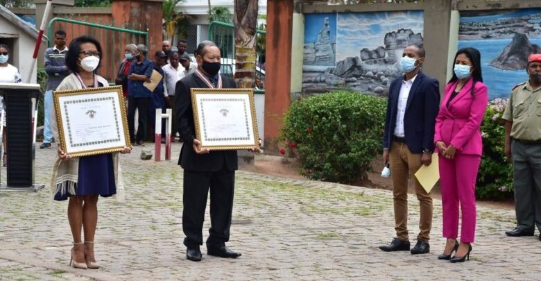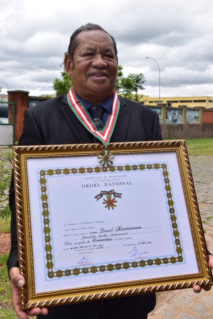 Olona roa samy nahavita be teto amin’ny firenena, na ny Profesora Vololontiana Hanta Marie Danielle, na ny mpanao gazety ara-panatanjahantena, Daniel Randriamaro. Tsy nisy tsy niaiky ny rehetra fa mendrika ny zava-bitan’izy ireo. Antony nahatonga ny Fitondram-panjakana nanolotra azy ireo ny mari-boninahi-pirenena « Commandeur de l’ordre National », omaly, tetsy anoloan’ny Tranombokim-pirenena Anosy. Lanonana notarihin’ny Minisitry ny Seraseras sy ny Kolontsaina, Lalatiana Andriatongarivo.