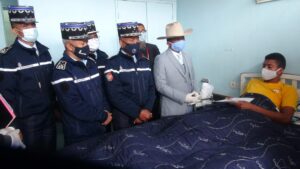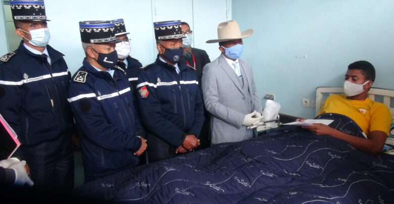 Novangian’ny Sekreteram-panjakana miadidy ny Zandarimaria, ny Jly Ravalomanana Richard sy ny Jly Kaomandin’ny Zandarimariam-pirenena sy ireo mpiara-miasa aminy omaly maraina, tetsy amin’ny Hopitaly Miaramila Soavinandriana, ireo zandary roa lahy, voatifitry ny dahalo tany Ampanihy Miandrivazo.Nankahery sy nanome « primes de bravoure », ranom-boankazo ary nanambara ny fanomezana « bonification d’ancienneté en port de grade » ny Seg. Tsy nohadinoany koa ny nilaza ny fahafahan’izy ireo misafidy ny toerana tiany hiasany, aorian’ny fahasitranany. Namerina ny fisaorana sy fankasitrahana ny Fitondram-panjakana, tarihin’ny filohan’ny Repoblika, Andry Rajoelina, tamin’ny fanomezana angidimby nanavotana ny ain’ireo zandary naratra avy any Ampanihy, ny Sekreteram-panjakana miadidy ny Zandarimaria. Tsy nohadinoany ny nisaotra ireo tomponandraikitry ny Hopitaly miaramila, izay mandray an-tanana tanteraka ny fitsaboana ireo marary. Nahitsy ny Seg, Jly Ravalomanana raha nilaza ny fanakianana tontosain’ireo mitonona ho miaro ny zon’olombelona.