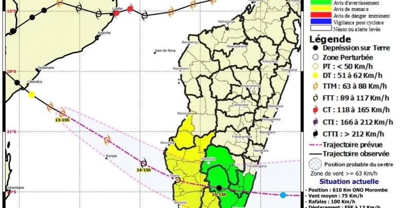 Mihatra noho izany ny filazana loza, ka naharay loza manambana miloko mavo ny ao amin’ny Faritra Atsimo Andrefana, Androy, Distrikan’i Morondava ary Manja. Naharay filazana loza fanairana miloko maitso kosa, ny Faritra Anosy, distrikan’Ihosy, Befotaka, Midongy Atsimo, ary Vangaindrano. Entanina hatrany ny mpampiasa ranomasina manomboka eo Besalampy ka hatrany Tolagnaro mba tsy hiandriaka intsony mandra-pahalasan’ny loza. Toy izany koa ny eo anelanelan’i Tolagnaro sy Mahanoro, manomboka anio maraina. Ny rehetra dia manana adidy hanaraka mandrakariva ny toromarika omen’ny manam-pahefan isan-tokony.