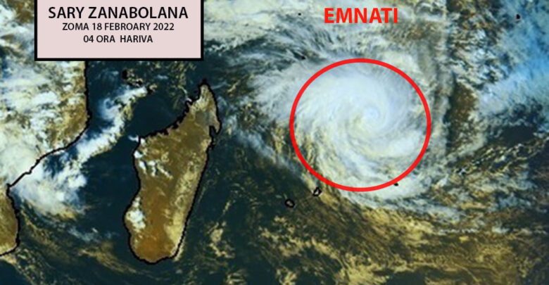 Nisy ny filazana manokana momba ny toetry ny andro omaly tamin’ny 04ora tolakandro, navoakan’ny foibe mpamantatra ny toetry ny andro (Météo). Araka ny fampitam-baovao, nitombo hery hatrany i EMNATI ka lasa “Cyclone Tropical”. Tany amin’ny manodidina ny 1 285 Km atsinanan’Antalaha no nisy ny foibeny omaly tamin’ny 04ora hariva. Niakatra ho 120 Km/ora ny rivotra entiny izay arahina tafiotra 170 Km/ora. Mikisaka miakandrefana somary atsimo-andrefana izy ka mahafaka 17 Km/ora. Manambana ny morontsiraka atsinanana i Emnati ka ahiana hiditra an-tanety eo anelanelan’i Toamasina sy Vohipeno ny Talata faha 22 Febroary ho avy izao amin’ny tanjaka “Cyclone Tropical Intense” na Rivodoza Mahery Vaika (165 Km/ora).