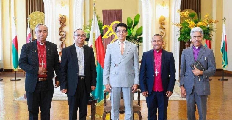 Tonga niarahaba sy nitondra ny teny firarian-tsoa ho an’ny filoha Andry Rajoelina sy ny ankohonany ireo Filoham-piangonana efatra mirahalahy ao amin’ny Fivondronan’ny fiangonana kristianina eto Madagasikara (FFKM), omaly maraina. Noraisin’ny Filoha tao Iavoloha izy efatra mirahalahy. Ny Mgr Raoelison Jean De Dieu, Arsevekan’Antananarivo, izay vao nandray ny toerana maha filohan’ny FFKM azy ny alahady teo, no nitondra ny teny fampidirana. Nitondra ny tenin’Andriamanitra sy nanao ny vavaka ho fangataham-pitahiana ho an’ny Filoha sy ny ankohonany ary ho an’ny firenena kosa, ny Pasitora Irako Andriamahazosoa Ammi, filohan’ny FJKM. Tonga teny Iavoloha avokoa ireo Filoham-piangonana efatra eo anivon’ny FFKM. Raha misy ireo milaza fa tsy mifanaraka ny fiangonana eo anivon’ny FFKM sy ny Fitondram-panjakana dia mandiso izany ny fahatongavan’ireto Filoham-piangonana ireto teny Iavoloha niarahaba ny Filoha Rajoelina. Maneho koa izao fihetsika izao fa marim-pototra ny fiaraha-miasa eo amin’ny Fanjakana sy ny fiangonana, ary miombom-po ho an’ny fikatsahana izay hahasoa ny vahoaka, sy ny fampandrosoana ny firenena izy ireo. Fihetsika iray izay mavesa-danja, maneho izany firahalahiana eo amin’ny fiangonana sy ny fitondrana izany ny fitrotroana am-bavaka ny Filoha Rajoelina sy ny ankohonany ary ny firenena, izay nataon’ny Pasitora Irako Andriamahazosoa.