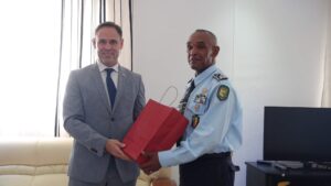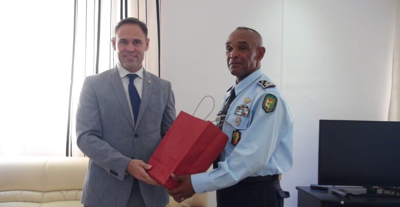 Tonga nanao fitsidihana ara-pomba fanajana ny Jeneraly Serge Gellé, Sekreteram-panjakana miadidy ny zandarimaria tao amin’ny Biraony, etsy amin’ny Toby Jeneraly Philibert Ramarolahy Betongolo, omaly hariva tamin’ny 2 ora sy sasany tolakandro, Andriamatoa Scott P.Kimpton «Attaché de securité»-n’ny Masoivoho amerikanina. Arahaba sy firariantsoa ary ny fankaherezana ny Jeneraly Sekreteram-panjakana miadidy ny zandarimaria, amin ‘ny adidy aman’andraikitra vaovao no anton-diany voalohany. Nirariany koa ny hitohizan’ny fiaraha-miasan’ny Masoivoho amerikanina sy ny Zandarimaria amin’ny lafiny fandriam-pahalemana ary vonona izy ny hifanome tanana amin’ny hanamafisana sy fanatsarana ny fiaraha-miasa, izay efa nisy hatrizay. Notsindriany manokana ny fisaorana noho ny fiaraha-miasan’ny Masoivoho sy ny Vondrona manokana « GSIS » ary sitrak’izy ireo ny hampitombo ny traikefa efa nananan’ity farany hatramin’izay. Nifandinihan’ny roa tonta ny hisian’ny fampianarana ny teny anglisy ho an’ny Zandary.
